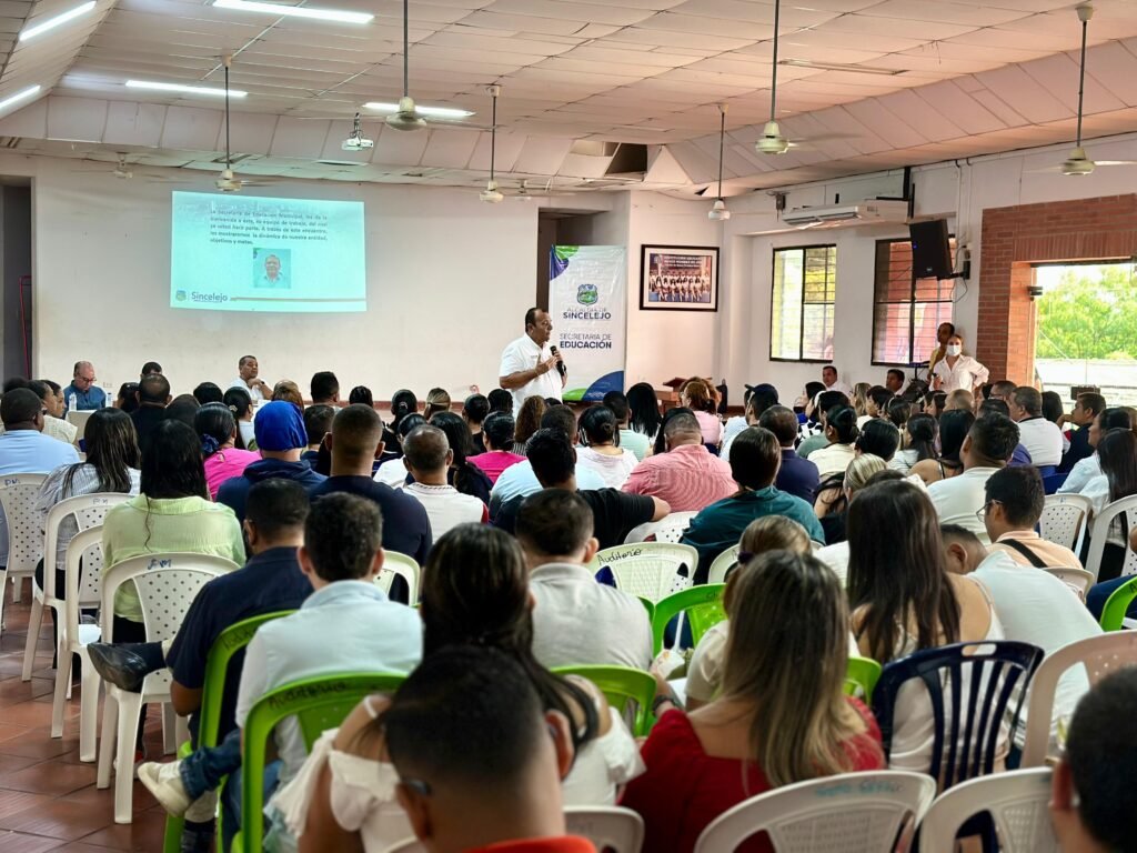 Mas de 200 funcionarios adscritos a establecimientos educativos oficiales de Sincelejo, entre docentes y directivos docentes en propiedad, traslado ordinario, permutas, periodo de prueba y vacancia temporal, participaron en la jornada de inducción y reinducción 2025, convocada por la Secretaría de Educación Municipal en el auditorio de la Institución Educativa Dulce Nombre de Jesús.